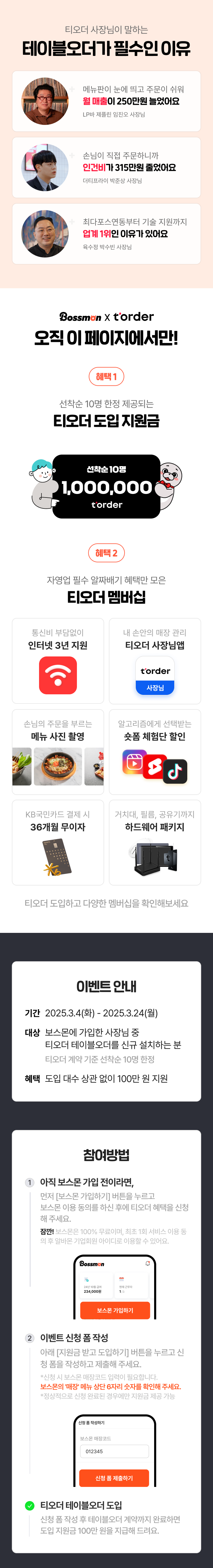 보스몬 x 티오더 역대급 100만원 혜택
